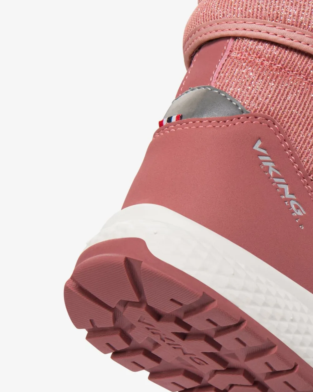 La barnet være godt utstyrt for alle eventyr i hverdagen med en støvel som tilbyr både stil og komfort. Den høye, glitrende overdelen har et praktisk design som gjør skoen lett å ta av og på, mens borrelåsfestet bak holder skoen på plass. Vikings Watershield-membran holder foten behagelig tørr i vått vær, mens et varmt, isolerende lag holder kulden ute. En lett EVA-mellomsåle reduserer belastningen ved hvert skritt, og en yttersåle i gummi gir godt grep.