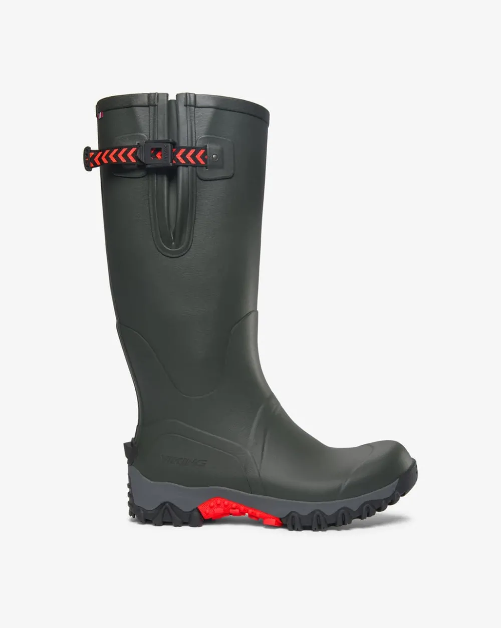 Vikings Trophy – støvel er en prisbelønt kundefavoritt fra år til år som tilbyr den ultimate ytelsen på gjørmete stier og ulendt terreng med kamuflasjemønster. Disse støvlene er laget av en gummiblanding med lav tetthet som letter støvelens totale vekt uten at det går på bekostning av kvaliteten. Støvelen består av gummi med et tredobbelt lag gjennom foten som gir økt stabilitet og holdbarhet. Trophy Camo har et høyt skaft og justerbar kilestropp som sitter på toppen av støvelen for å kjempe mot elementene og holde deg tørr med en sikker passform. Disse støvlene er designet for jegere og er utstyrt med Vikings unike UGC®-såle. En robust yttersåle med dype flerdireksjonelle klaffer som dekker yttersålen, til og med buen, for et perfekt grep utendørs. Skaftet er foret med en slitesterk og hurtigtørkende polyesterforing. Den konturformede EVA-innersålen er designet for komfort hele dagen og er avtagbar for rask tørking. Denne støvelen har en standard passform i hele skaftet og ankelen med et mer romslig fotområde.